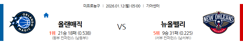 1. 뉴올리언즈 페리컨스 vs 올랜도 매직 (05:00)
