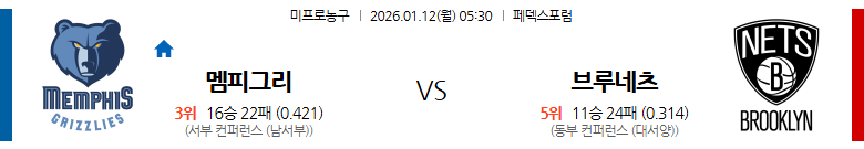 | 05:30 | 멤피스 | 114 – 108 | 브루클린 | 소폭 언더 |