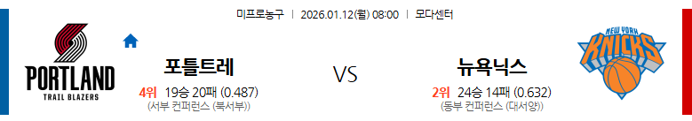 3. 뉴욕 닉스 vs 포틀랜드 트레일블레이저스 (08:00)