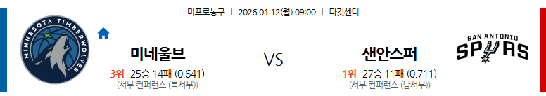 5. 샌안토니오 스퍼스 vs 미네소타 울브스 (09:00)