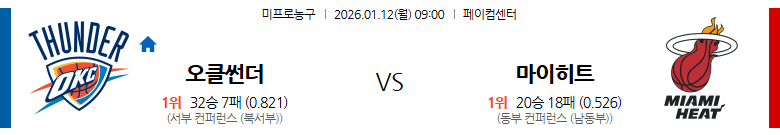 6. 마이애미 히트 vs 오클라호마시티 썬더 (09:00)
