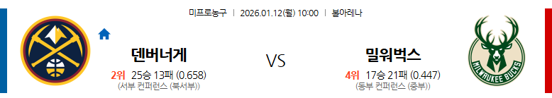 7. 밀워키 벅스 vs 덴버 너게츠 (10:00)