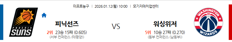 8. 워싱턴 위저즈 vs 피닉스 선즈 (10:00)