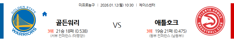 | 10:30 | 골든스테이트 | 124 – 118 | 애틀랜타 | 오버 |