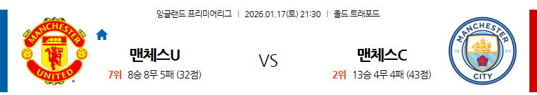 2026년 1월 17일 토요일 21시 30분(한국 시간), 올드 트래포드에서 맨체스터 유나이티드와 맨체스터 시티가 맞붙는다.